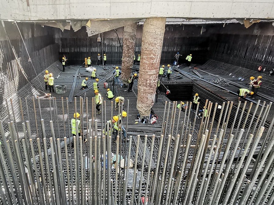 底板浇筑是关键环节之一,其质量直接关系到整个结构的稳定性和安全性。在浇筑前期,广州工程建设指挥部广南段落指挥部组织参建单位详细制订施工计划,对施工人员开展技术培训和安全教育。在浇筑过程中,严格落实施工规范和标准进行操作,对混凝土的性能、温度、浇筑速度等关键参数进行严格监督和控制,有效确保浇筑质量的可靠和稳定。国庆假期,现场共浇筑底板2仓、侧墙1仓,浇筑方量约3000立方米,满足盾构始发必备条件的主体结构累计浇筑5564.6立方米。
