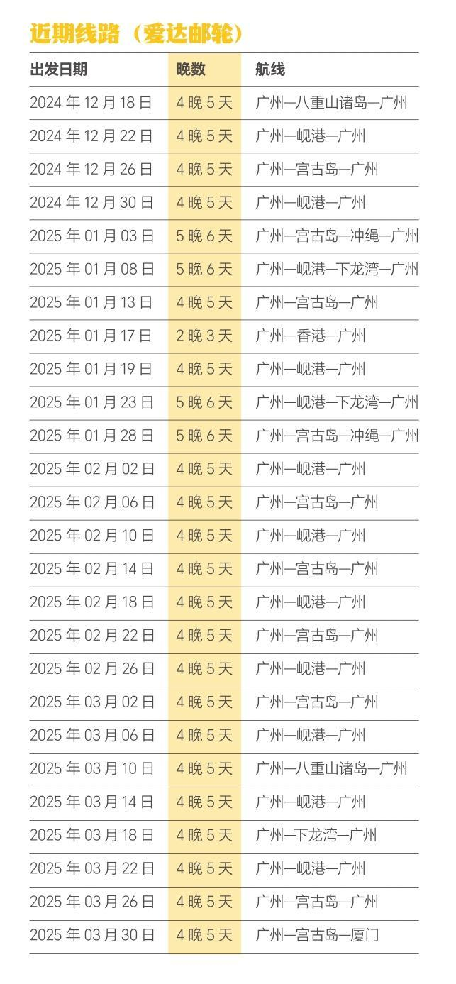 随着南沙国际邮轮母港正式开航开港,为市民游客带来了出行的新选择。爱达邮轮(Adora Cruises)宣布旗下爱达·地中海号将于12月18日开启从广州南沙出发的2晚3天至5晚6天国际邮轮航线。