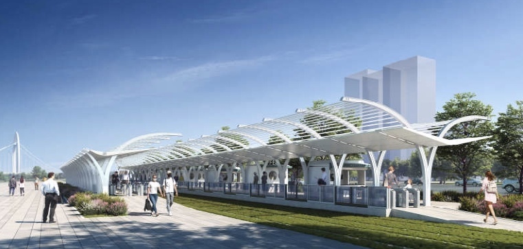 招标显示,有轨电车终点站迁移工程是阅江路(广州大道-猎德大道)品质提升项目的其中一部分。2022年,阅江路滨江段展开景观环境提升设计竞赛,经专家评审,从8家竞赛成果中选出了3个优胜方案,最终“珠联碧合,跃动广心”成为中选方案。
