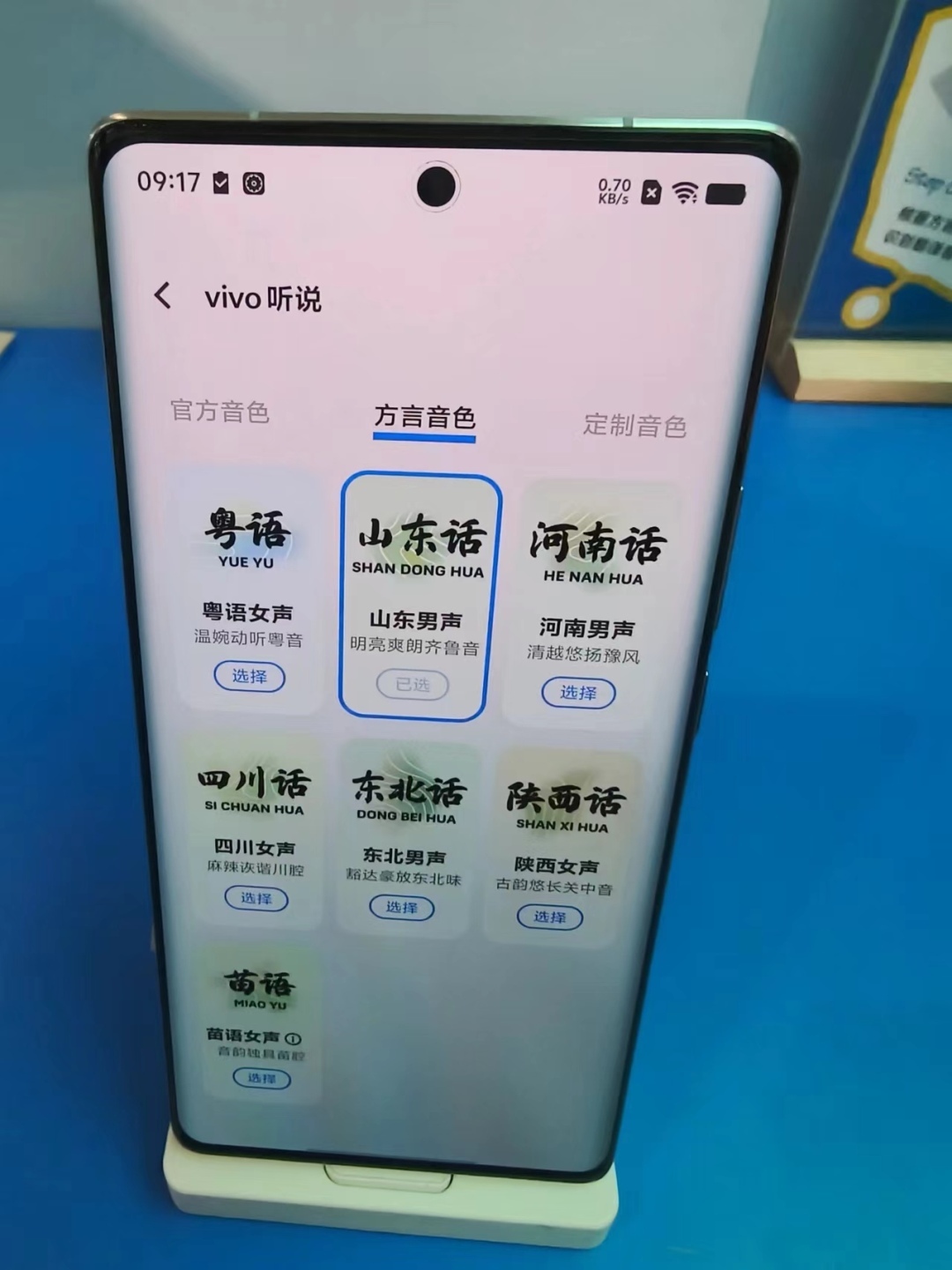 此外,重构的重点还在于“人与物理世界的连接体验”。记者看到,利用多模态大模型,手机已然成为视障人士的眼睛,可以方便地帮助视障人士“读出”所在的环境等。“vivo看见”功能得到了语音大模型加持,新增了实时问答功能,而今年为了协助国家通用手语的普及与推广,在“手语翻译官”中升级了“手语学习”功能,希望可以帮助更多的人学习手语。基于蓝心语音大模型,“vivo听说”新增了方言自由说功能,目前支持6种方言,以解决各地区间的沟通障碍问题,也让用户可以以自己最熟悉的乡音与手机进行交互。