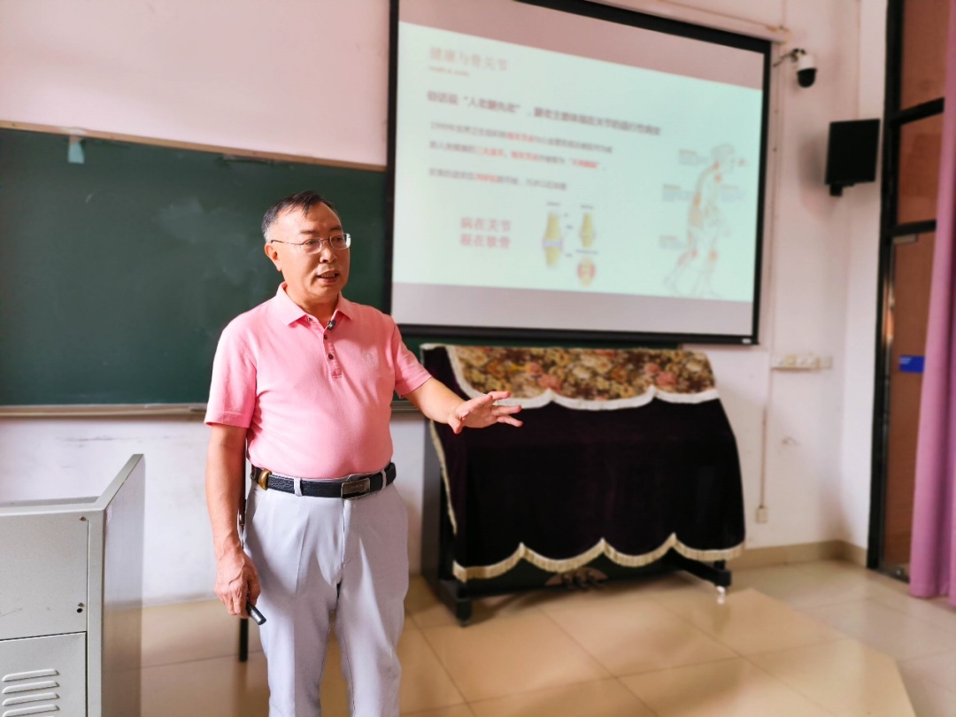 当天,主持人以手指操为开场,引导居民共同参与健康活动。随后,此次活动的主讲嘉宾,银发智库专家、长江学者特聘教授、华南理工大学博士生、硕士生导师赵谋明以通俗易懂的语言和贴近生活的案例,为居民群众详细解读骨骼健康问题,传递科学、前沿、权威的骨关节知识及养护方法。