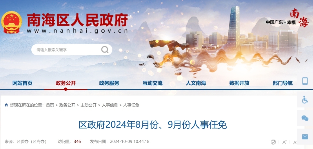 郭遥宇同志任西樵山风景名胜区(文化旅游区)管理委员会专职副主任;