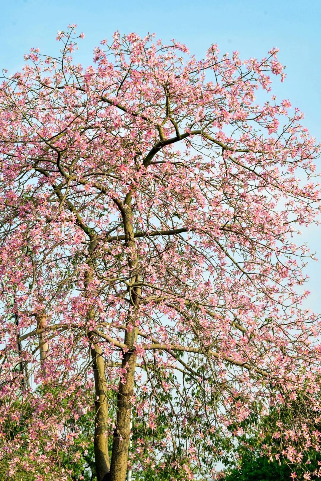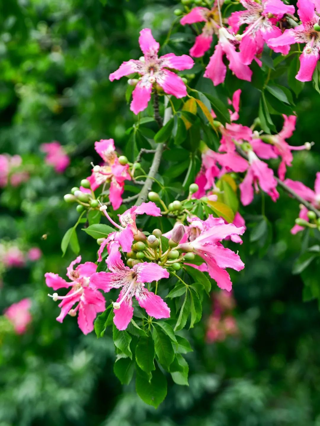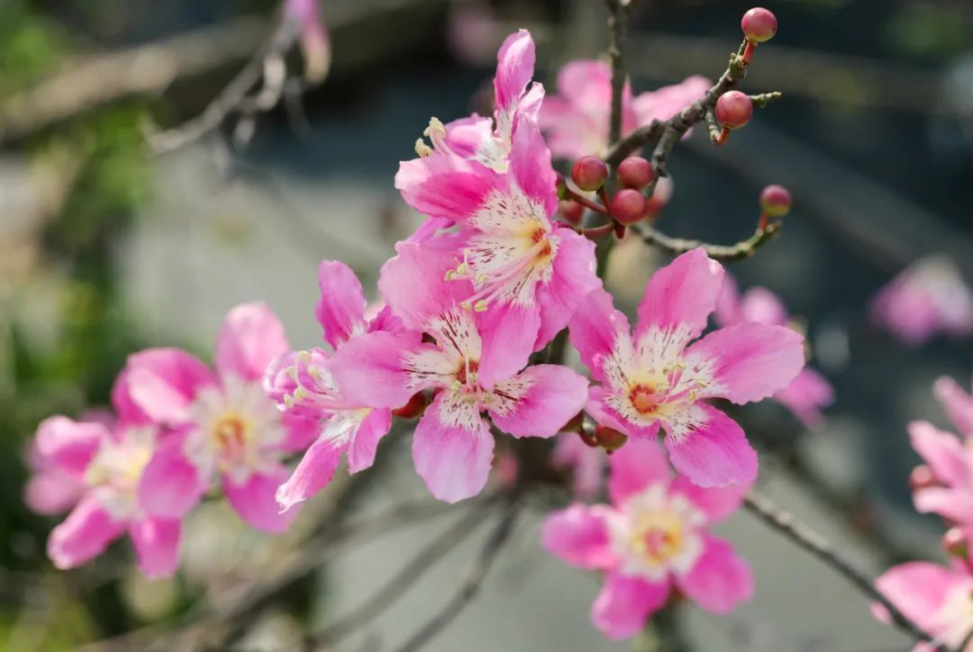 美丽异木棉是优良的观花乔木,又有“美人树”之称,花期一般在秋冬季,而在广州,温暖适宜的气候让它的开花时间有时候会提前,花期也会变得更长。