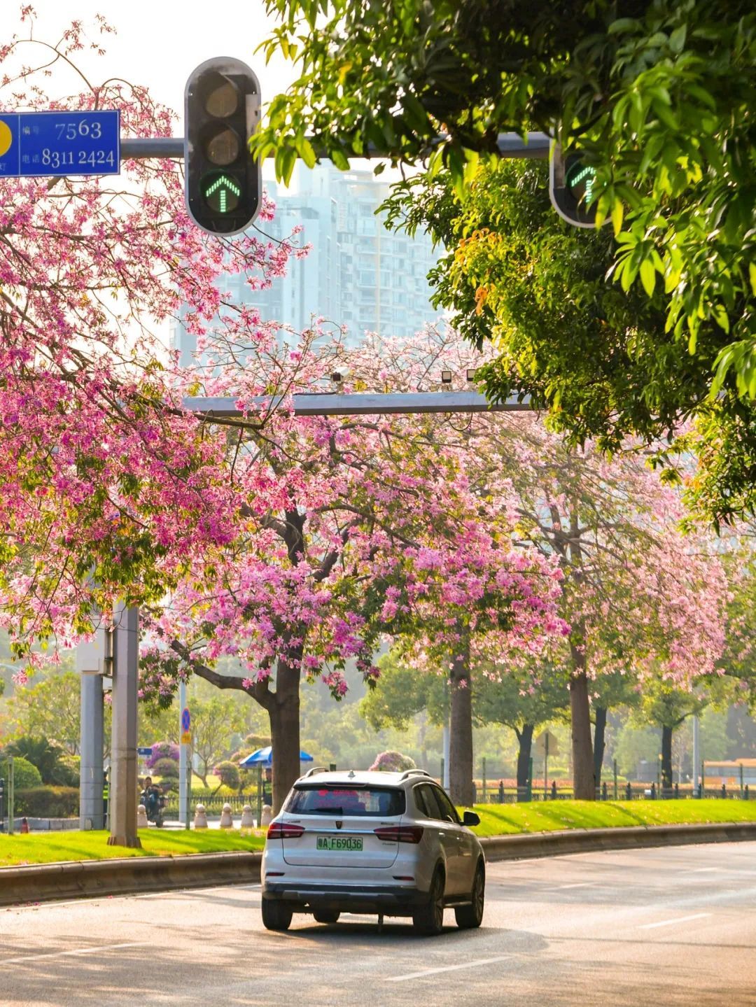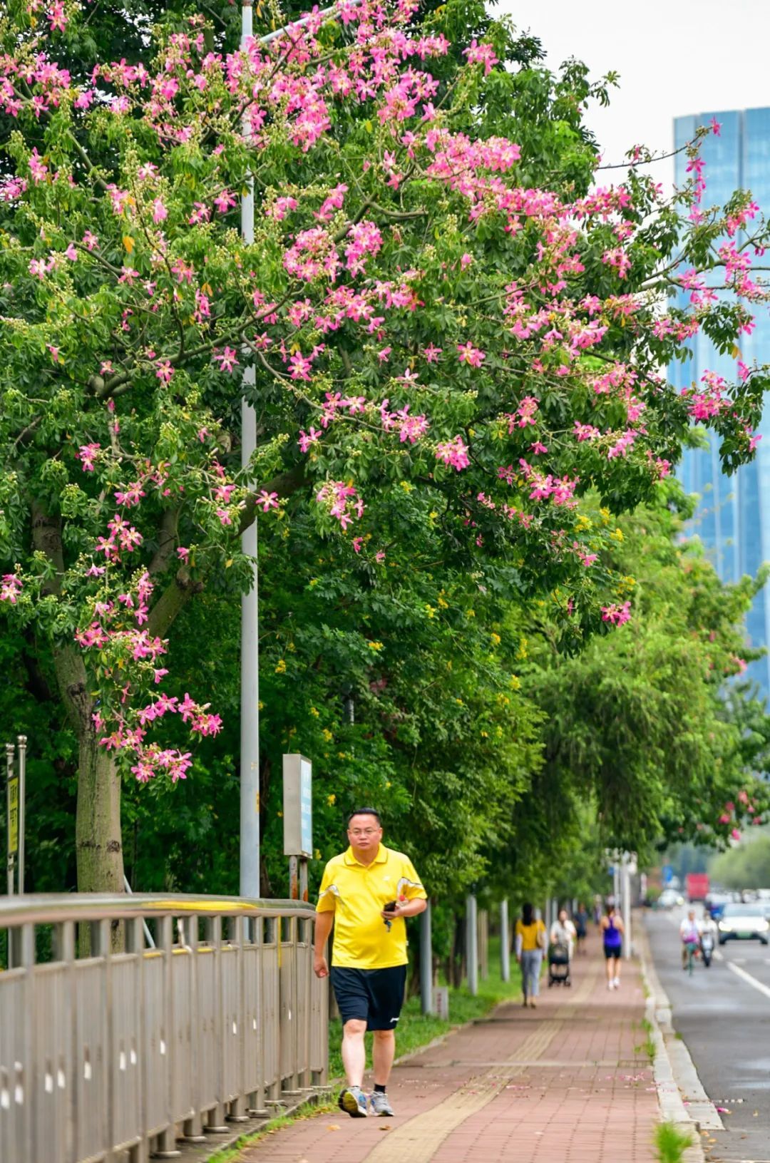 ▲ 10月8日,艺洲路,美丽异木棉点亮了整条道路。(摄影|陈忧子)