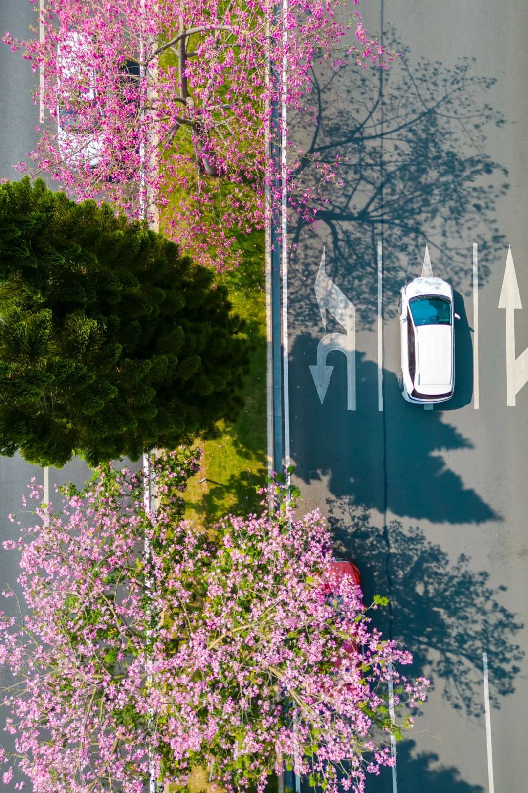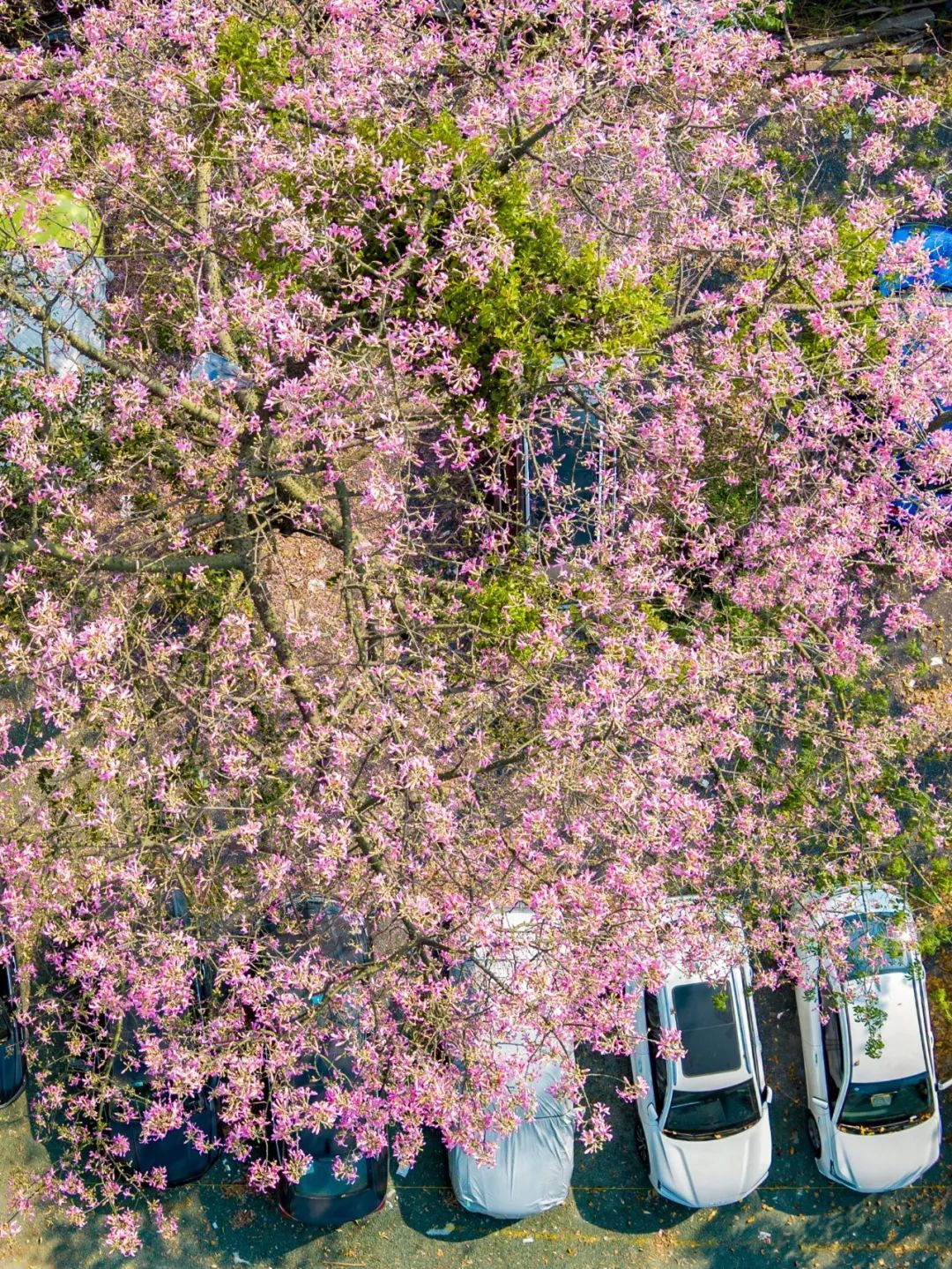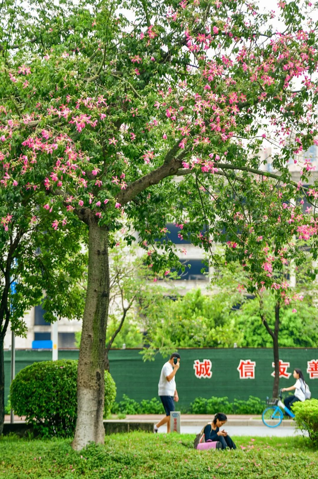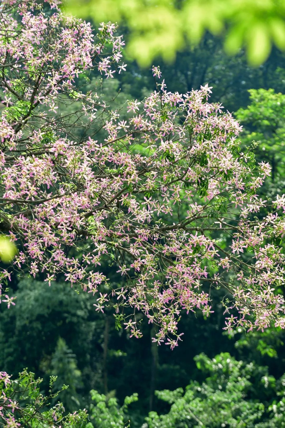 ▲10月11日,艺洲路。美丽异木棉开得层层叠叠,微风拂过,花瓣轻盈飘落,似粉雪飞舞。(摄影|吴子良)