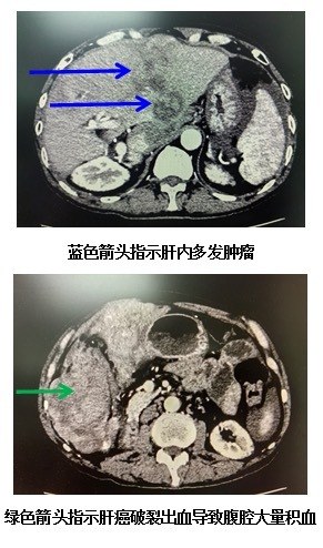 经过查看病历资料及影像图像发现,该患者肝癌肝内多发转移,腹腔较多积血,血色素明显下降,如不及时止血,可能危及生命。