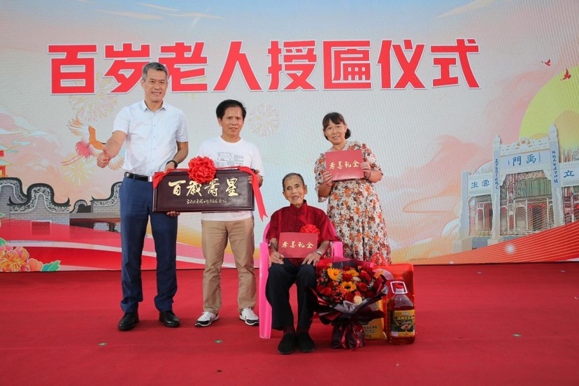 长寿,是对幸福的最好诠释。常住人口约6万的芦苞,拥有着令人瞩目的长寿群体:9位超百岁寿星、1287位80岁以上的老人。他们是对“中国长寿之乡”标准的完美超越,更是芦苞社会各界共同努力、关心老年人事业的最好证明。活动现场慰问独树岗村百岁寿星蔡赞显及20位长者代表,在全村营造尊老敬老的社会氛围。