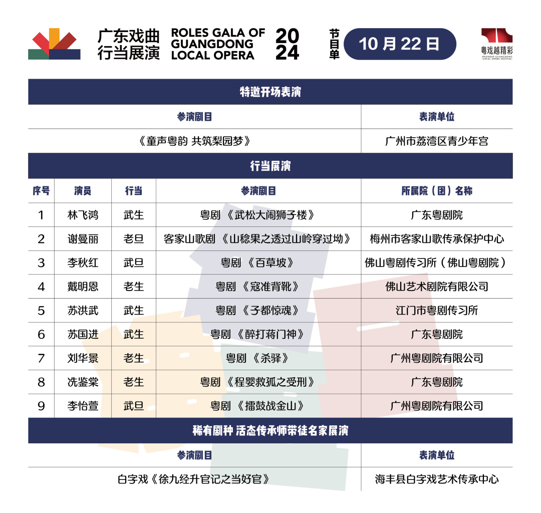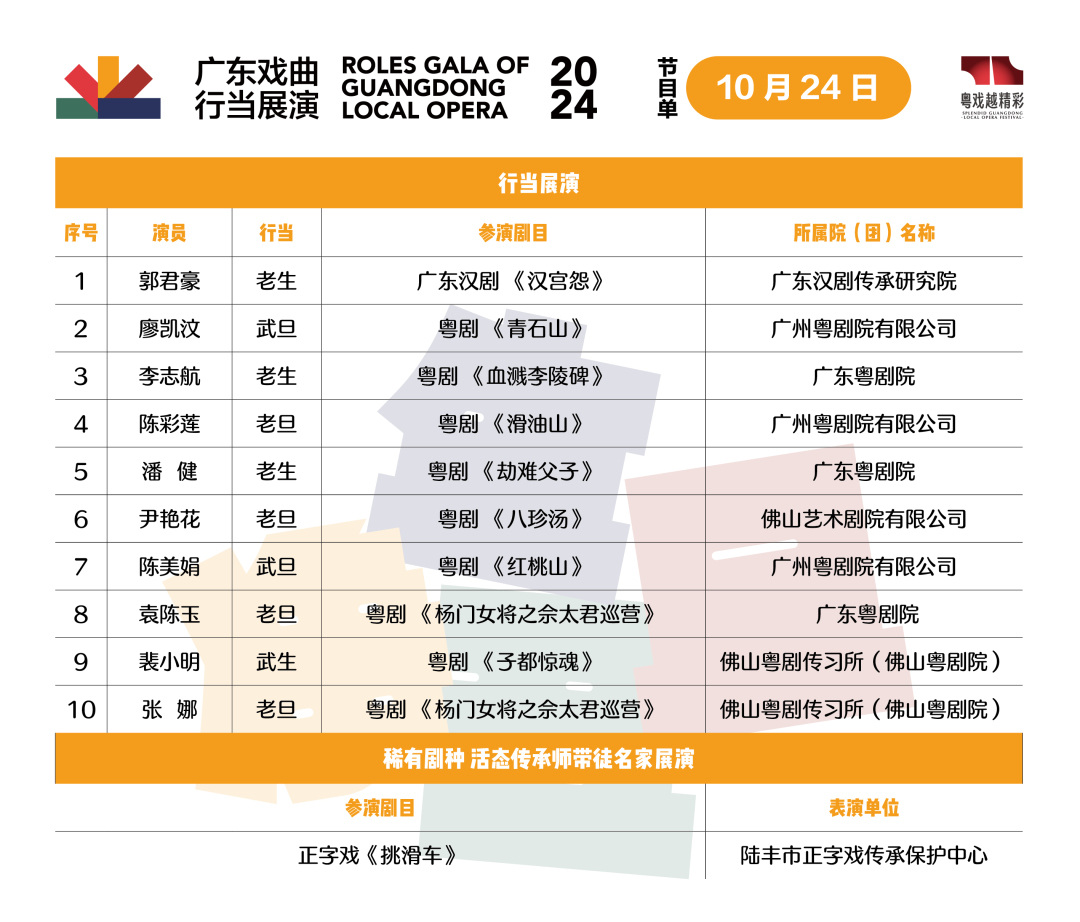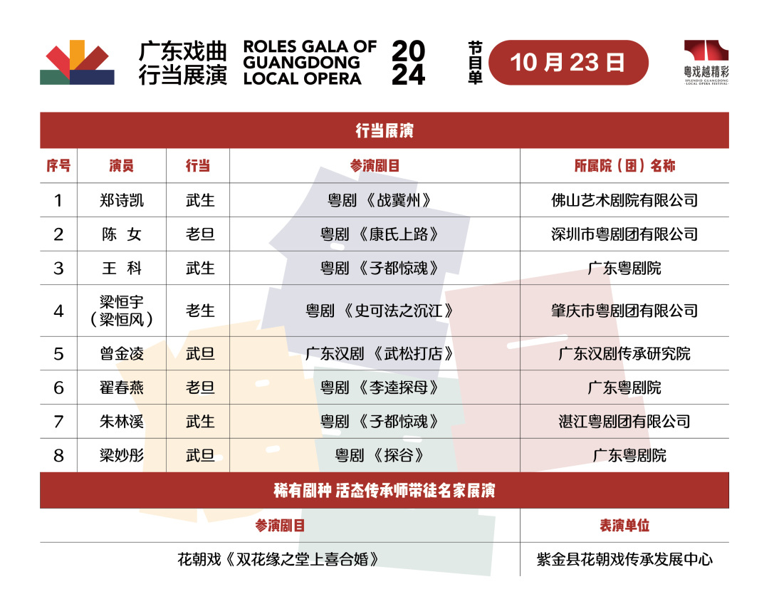 本年度“粤戏越精彩”项目为“2024粤戏越精彩·广东戏曲行当展演”。“广东戏曲行当展演”迄今为止已经举办了三届,展演过的行当有青衣、丑行、花脸、武旦、花旦、小生。