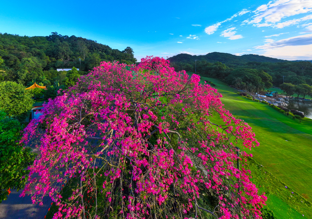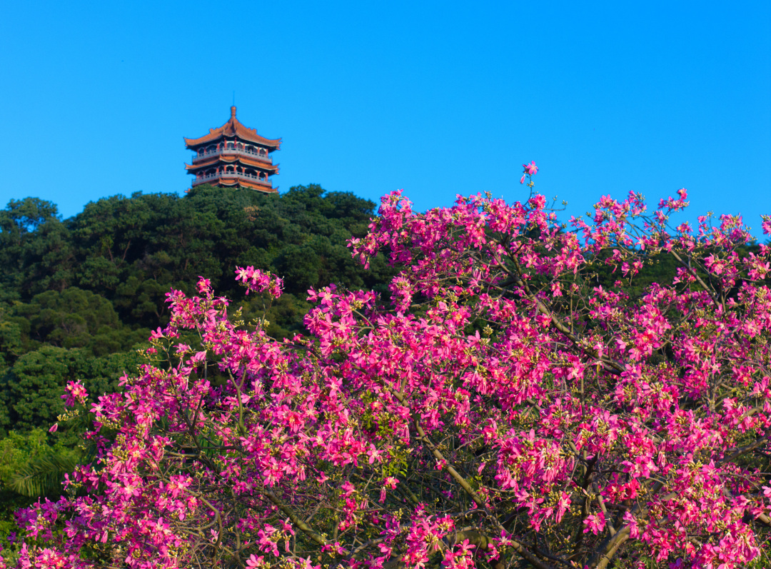 记者从白云山景区了解到,近期白云山异木棉竞相绽放,满树粉红与蓝天相互辉映,与绿树交织如画,粉得动人,蓝得净透,绿得惬意,尽显白云山生态之美,静谧之美。这一刻,芳菲四溢的异木棉“粉”动广州城,“粉”出朋友圈。仰望蓝天,人们也许本只想感受凉凉秋意,却被满树的粉红惊艳。惊鸿一瞥,差点以为时光快进,已是宫粉紫荆盛放的春天。