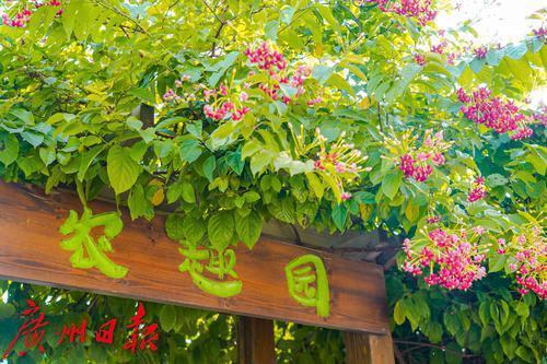 在广州市白云区江高镇南岗村,一座农趣园成为村里的一处特色景点。该园集大棚作业、蔬果盆景种植、喂养体验、党建共建、学校实践、社会科普等功能于一体,园内不仅有红花绿植,更布置有装饰着涂鸦插画的栅栏花盆、各式各样的农作物科普展板,整体环境清整,造景美观,成为不少周边地区居民闲暇游玩的不二之选。