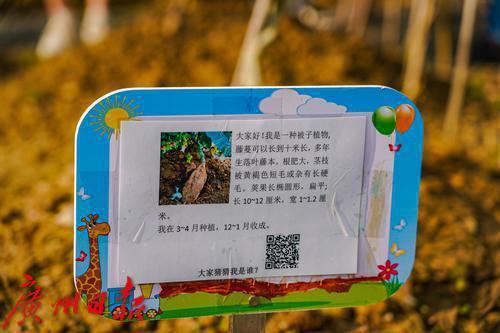 园中划分不同区域,依时而种各种作物,并插上小展板做好科普。