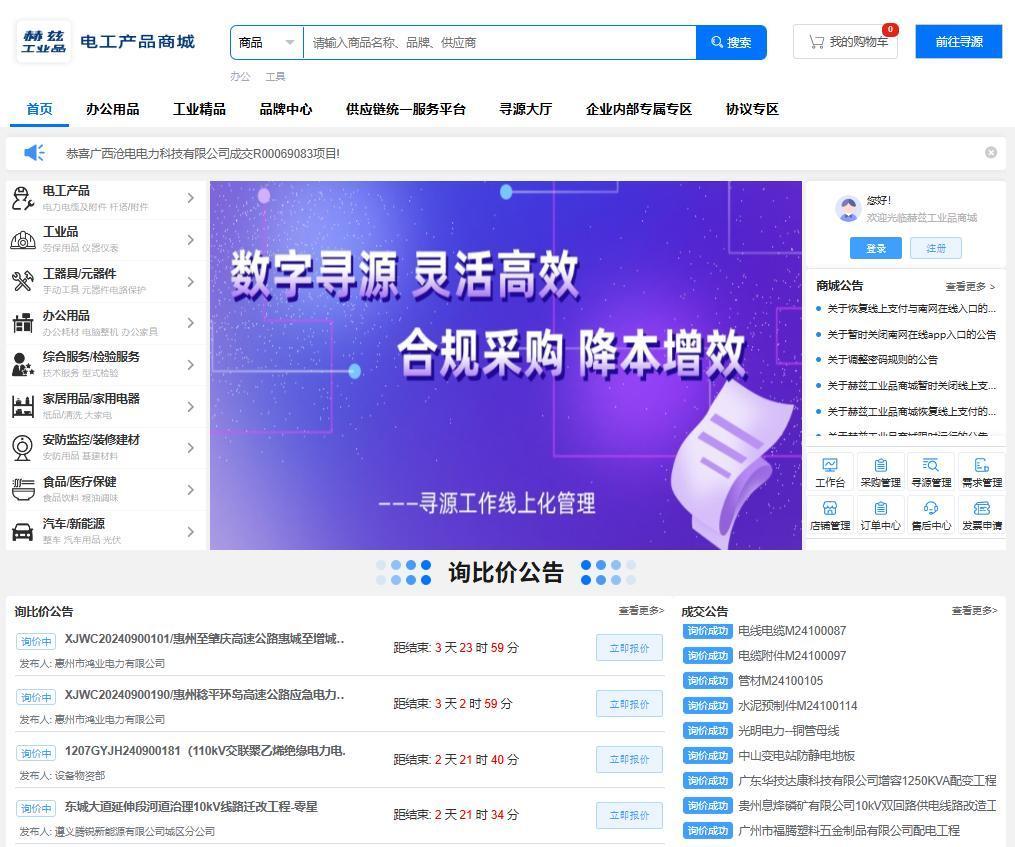 值得一提的是,赫兹工业品商城还为广东汇源通集团有限公司提供了“量身定制”的服务。2022年初,商城寻源比(竞)价采购模块完成与汇源通集团ERP接口打通,打造了电力物资进商城示范案例,实现汇源通全量电力物资在商城采购。