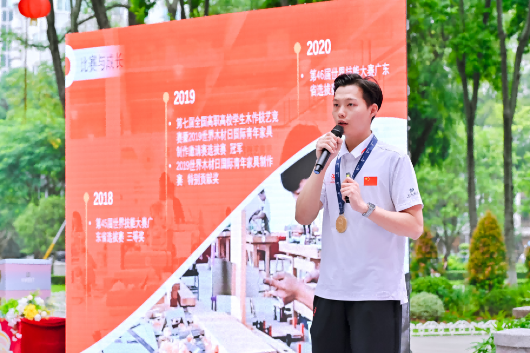 为弘扬奥林匹克精神,人民公园特邀在第47届世界技能大赛精细木工项目中荣获金牌的广州市轻工技师学院教师黄波林,在音乐亭分享夺冠背后的奋斗故事和心路历程。这是黄波林继9月27日参加我的广州·我的十五运——“青春飞扬 筑梦全运”冠军迎全运故事会后再次精彩开讲。