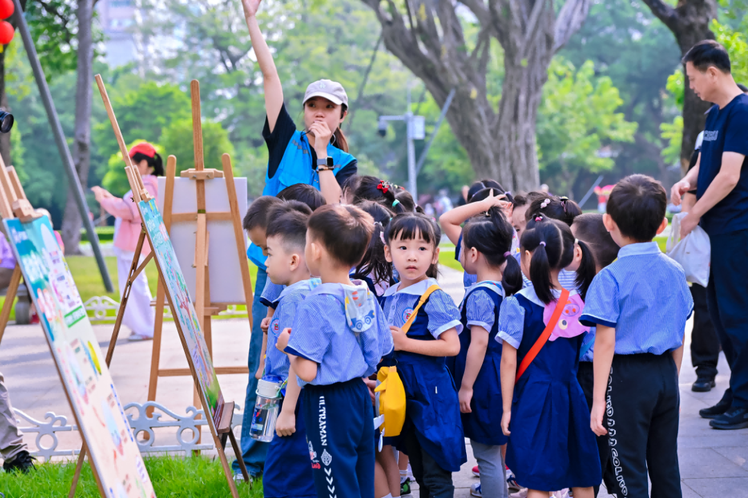 人民公园还举办了“百年名园寻宝记”活动,让孩子们一起探寻人民公园的文化瑰宝和自然珍宝。活动现场,“多样生态代言小明星”“城市公园生态棋”“鸟喙食谱大揭秘”“文物鉴宝小专家”等互动游戏妙趣横生,吸引众多小朋友踊跃参与。