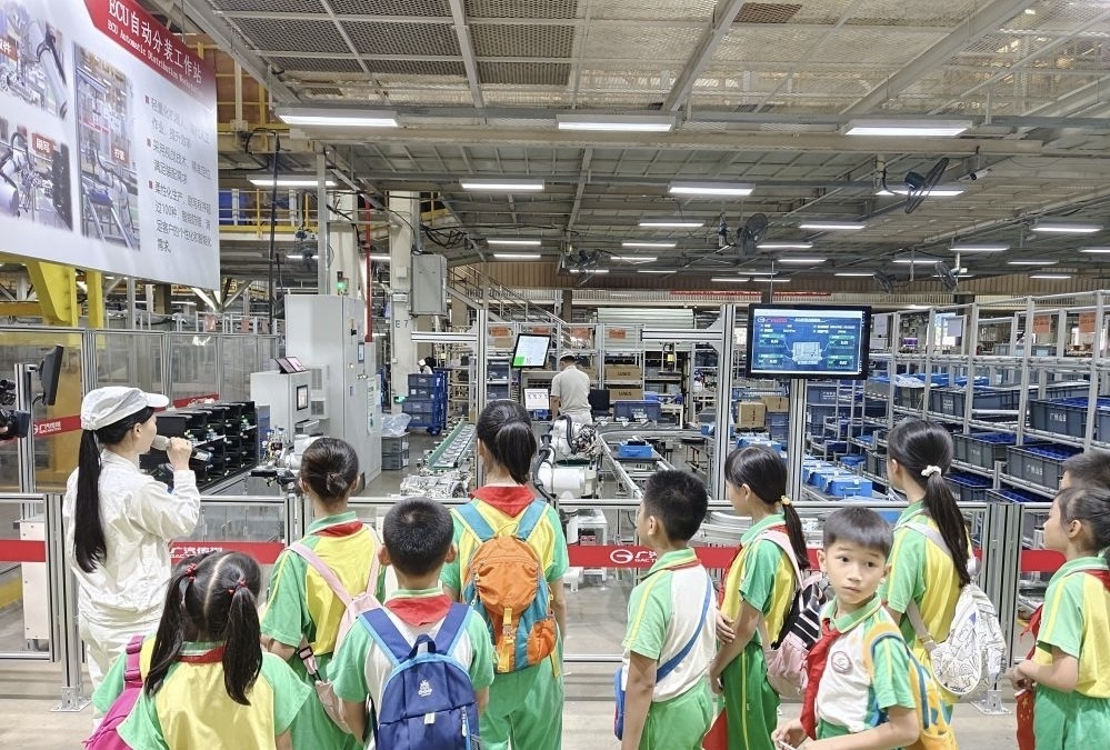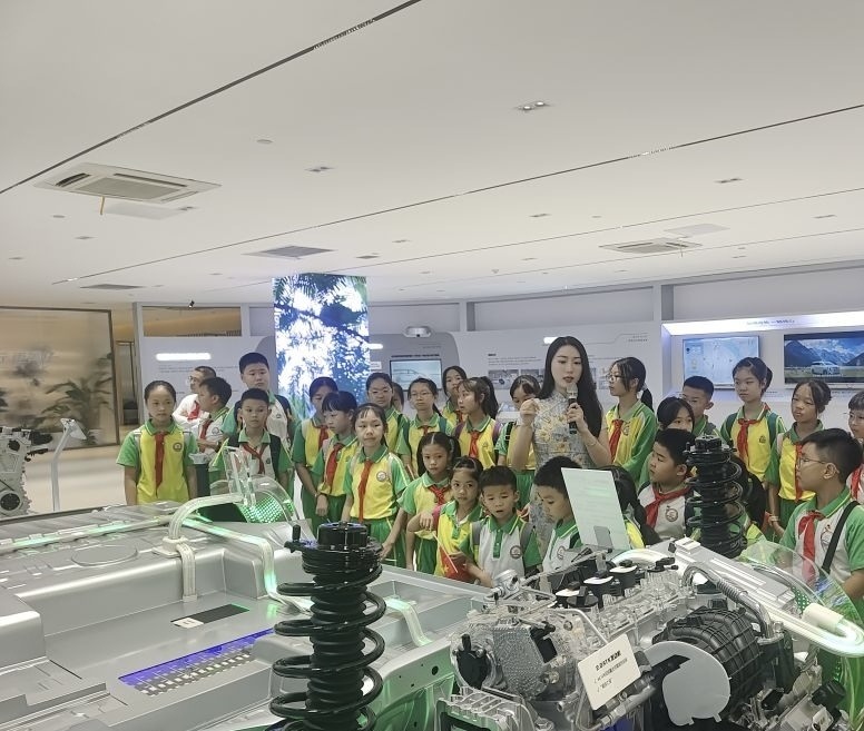 “学生可以通过聆听讲解和现场参观,了解我们广汽传祺的发展历史,我们将整个汽车架构透明化,可以让这些小学生可以更加直观深入地了解到我们汽车的每一个零部件,了解传祺汽车的核心科技。”据广汽传祺团委副书记林青霄介绍,近年来,广汽传祺着力自主创新,“以新提质”,用科技催生新质生产力,挺立汽车科技浪潮潮头。此次参观理论和实践相结合,希望学生通过实地参观学习,亲身感受汽车制造的高效自动化。对我国汽车工业有更深入的了解,让他们对科技强国的愿景更加坚定。