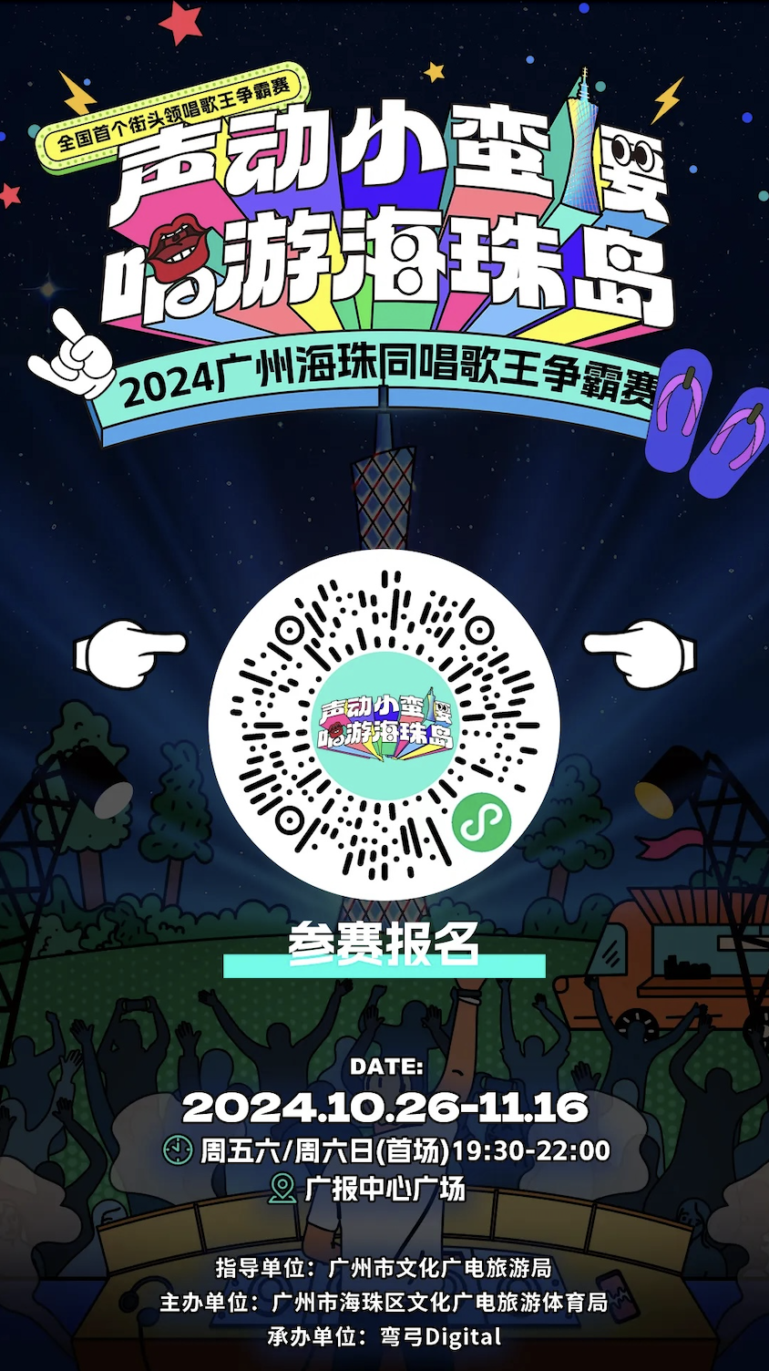“声动小蛮腰,唱游海珠岛”2024广州海珠同唱歌王争霸赛等你大展歌喉。