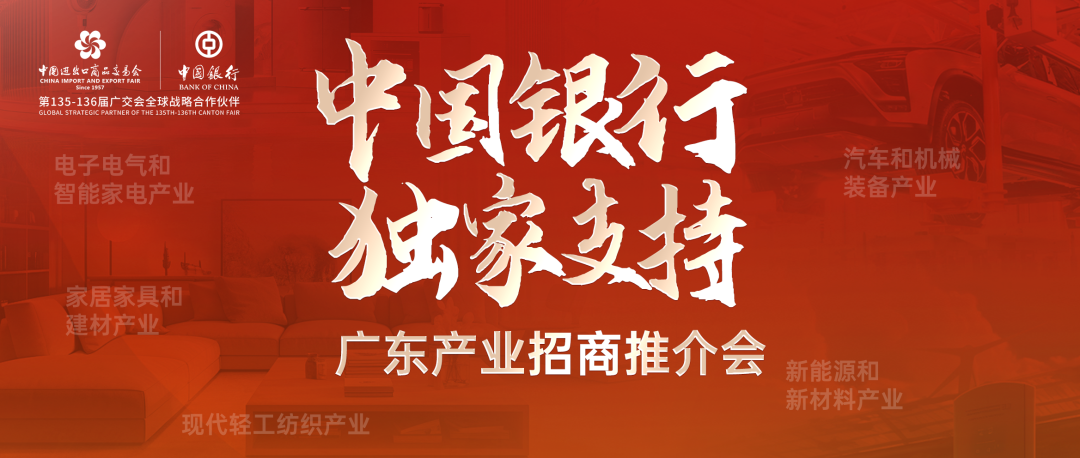 中国银行作为本届广交会“全球战略合作伙伴”和本次产业招商推介活动的独家支持单位,将全力支持5场招商活动顺利举办,并在每场活动中为重点参展商、境内外采购商代表等参会客户全面介绍该行产业投资支持政策及金融服务,充分发挥外汇外贸专业优势支持广东外向型经济发展,服务地方政府招商引资,赋能经贸往来。