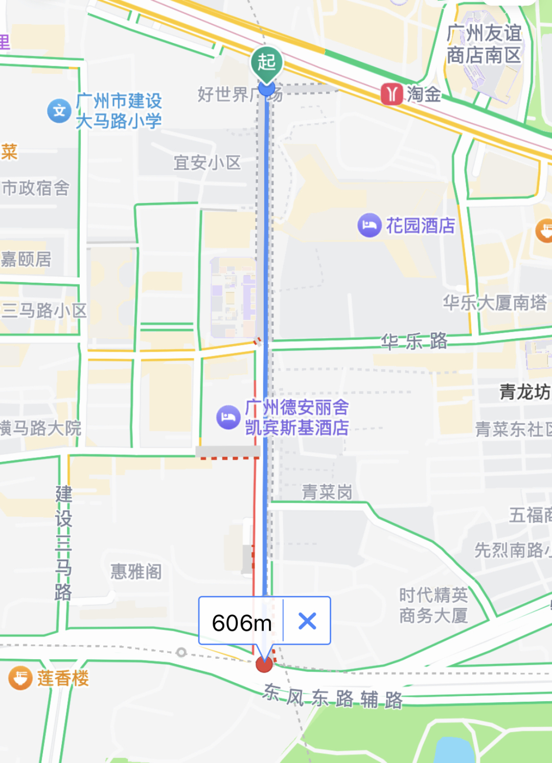 相比之下,5号线淘金站换乘至13号线的步行距离和时间都更长,乘客要跨过长达600米的建设六马路。如何反映两个车站不相近却相连的关系,是异名换乘方案有待解决的问题。