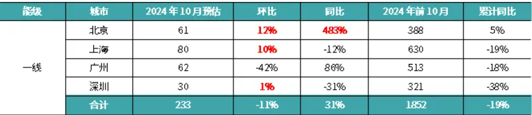克而瑞研究中心相关负责人表示,预计10月整体成交大概率稳步上行,环比增三至五成,同比因去年基数较低,预期转正。而二手房或将环比增一至两成,增幅略小于新房。分城市来看,核心一线城市仍处于新政利好期,新房成交预期环比增长3成以上,而二手房成交增幅略有放缓。