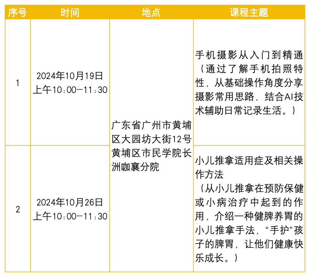 广州市首个市民学院黄埔区市民学院长洲咖襄分院,已在长洲街道揭牌并正式开课。本月会有两个课程,欢迎广大市民报名。