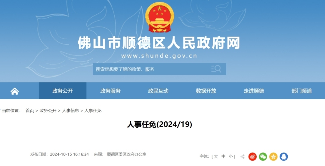 近日,佛山人社局官网及顺德区政府官网发布了最新的人事任免。
