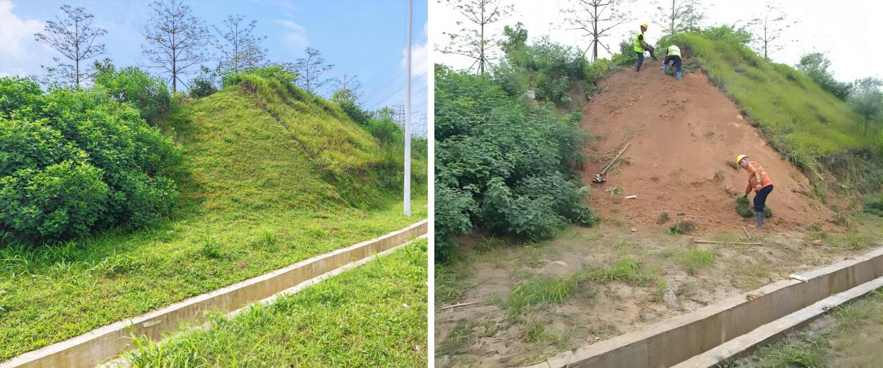 高速运管还开展“路美行动”道路环境提升专题行动,通过种植草皮、播撒草籽、种植树木等提升互通立交、隧道出入口绿化品质,对辖区重点边坡绿网破损、事故多发点设施提升等进行专项整治,通过更换防撞桶反光膜、新增路面轮廓反光标、开展沥青加铺等措施持续提升道路整洁舒适度。广河增从、北三环、从埔、大广高速播撒草籽约25828平方、补种草皮约3500平方边坡,清理破损绿网85处,防撞桶反光膜更换79处,广河涂装翻新防撞墙2500m,大广沥青加铺2081m,机场高速优化时花布置,累计更换时花近3800平方米,修剪中分带绿篱14公里,全力打造绿美生态公路,以良好的道路景观、优美的路域环境让广大广交会客商舒畅出行。