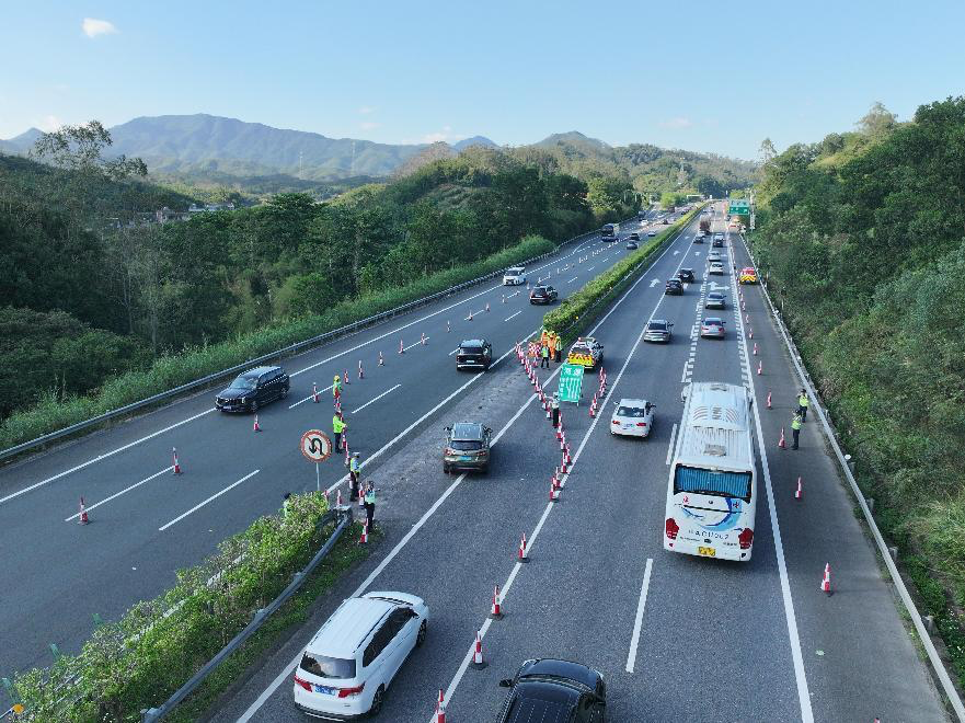 此外,为确保广交会期间道路交通顺畅,高速运管提前部署多种预案模式,强化人工巡查与平台事件检测的“人机共巡”,有针对性对路面交通进行实时监测;密切与交通运输局、交警、机场、电台等单位共建的信息多方联动机制,及时发布、接收各类路况信息,并制定交通“三级控流分流”方案,当路段车流量过大时采取临时控流措施,确保主线车流有序通行。广河高速创新提出服务区“潮汐”疏导模式,通过扩宽服务区南北区之间的便道、灵活调整服务区两端活动中央分隔栏等方式,实现新安服务区南北区资源共享、正果停车区主线双向车道共享,极大缓解服务区拥堵难题。路政采取“无人机+”巡控模式,通过在易拥堵区间布设路警联勤现场处置点,路拯联勤待命点等方式,配备4G执法记录仪及180°全景车载摄录仪终端设备,实现对轻微交通事故、车辆违停、车道管控等事件的快速发现、快速处置。