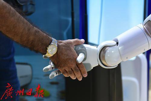 客商与机器人握手。