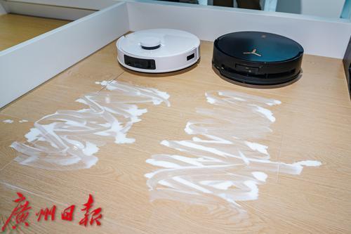 根据现场演示,与同行产品相比,同样的地面污渍,科沃斯的扫地机器人一扫则能“无痕”。