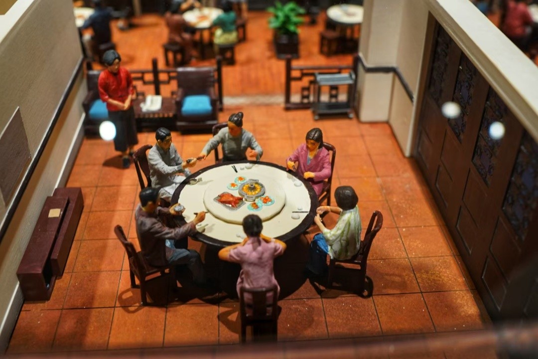 旧照片、老菜单、微缩景观……走进这个历史文化空间,满满当当又铺陈有致的展示引人入胜,让人仿佛踏入了时光的烟云之中。据介绍,这是中国大酒店为庆祝其40周年精心打造的一个空间,以“粤”为主题,包含粤·中国、粤·典范、粤·品味、粤·蜕变四个部分,分别从不同维度回顾了酒店的丰富历史。空间里不仅展品丰富、形式多元,还破局巧思,比如单是展出的菜单部分,就是从近千份旧菜单、席珍中才精挑细选出了30份珍藏菜单展出,精益求精,力求从中展示40年来广州美食品味、消费习惯等变迁。