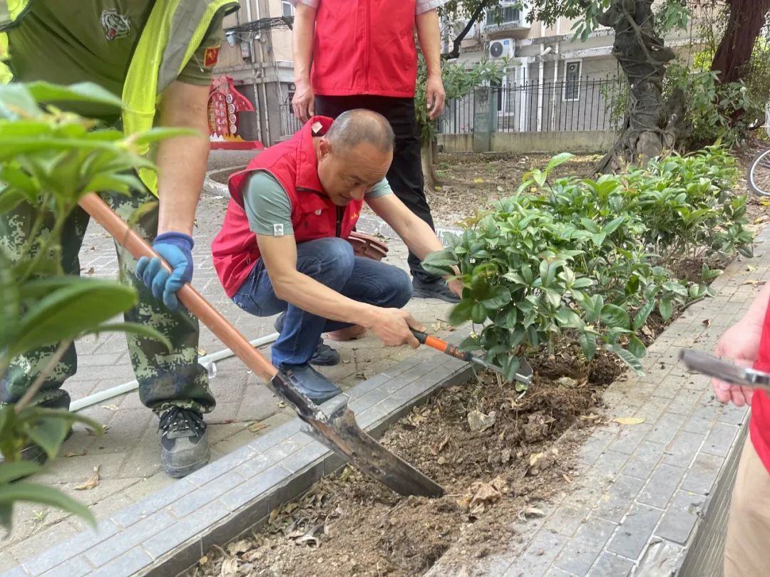 ▲“党建引领添新绿”主题党日活动,为小区添绿植。
