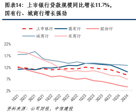 记者留意到,在有效需求偏弱和供给“挤水分”等多重因素影响下,上市银行披露的2024年半年报显示,贷款增速在放缓。Wind数据显示,今年上半年,42家A股上市银行的贷款同比增速环比下降1.1个百分点至9.0%,其中,国有银行降幅最大,贷款同比增速环比回落1.4个百分点至10.1%。
