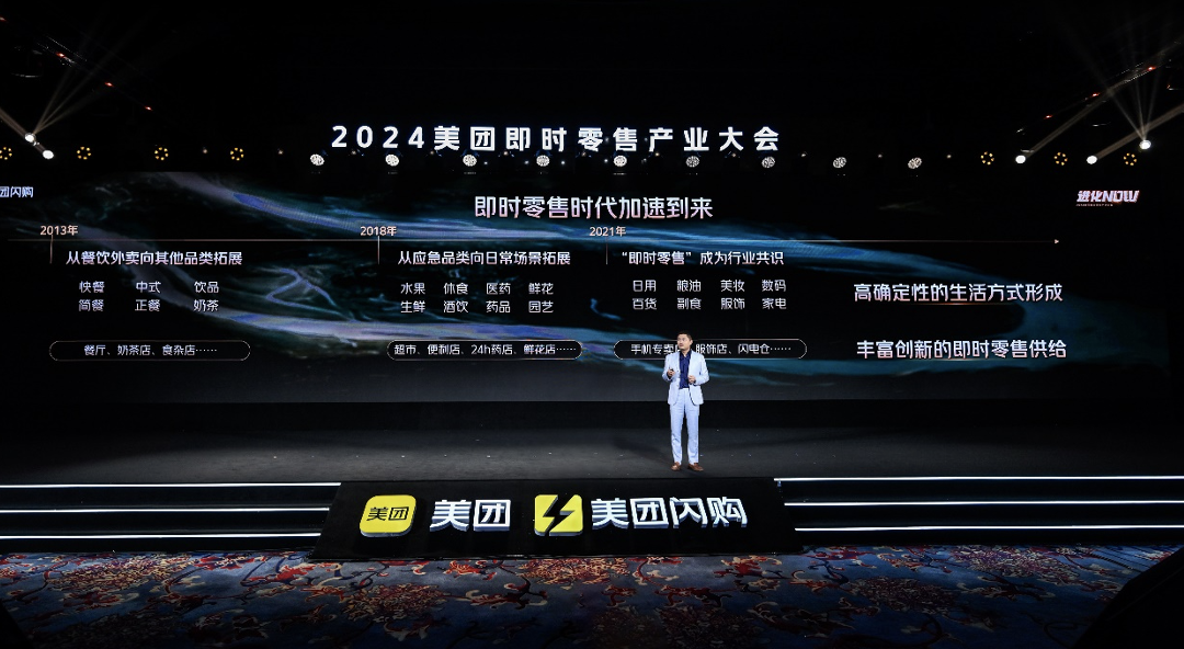 王莆中指出,即时零售时代如今正加速到来,其标志是,即时零售作为一种高确定性生活方式的形成和延展,以及即时零售供给的丰富与创新。“2024年1月至8月,美团闪购夜间订单占比持续提升,达到26%;在县域等下沉市场,美团即时零售订单量同比增长54%。这些都是纯粹的增量消费。”其进一步表示,即时零售迄今发展出多类供给物种,有像罗森一样“仓即是店”的业态,有像永辉、大润发一样“店包含仓”的业态,也有像小象超市、叮咚买菜、美团闪电仓一样的独立仓业态。