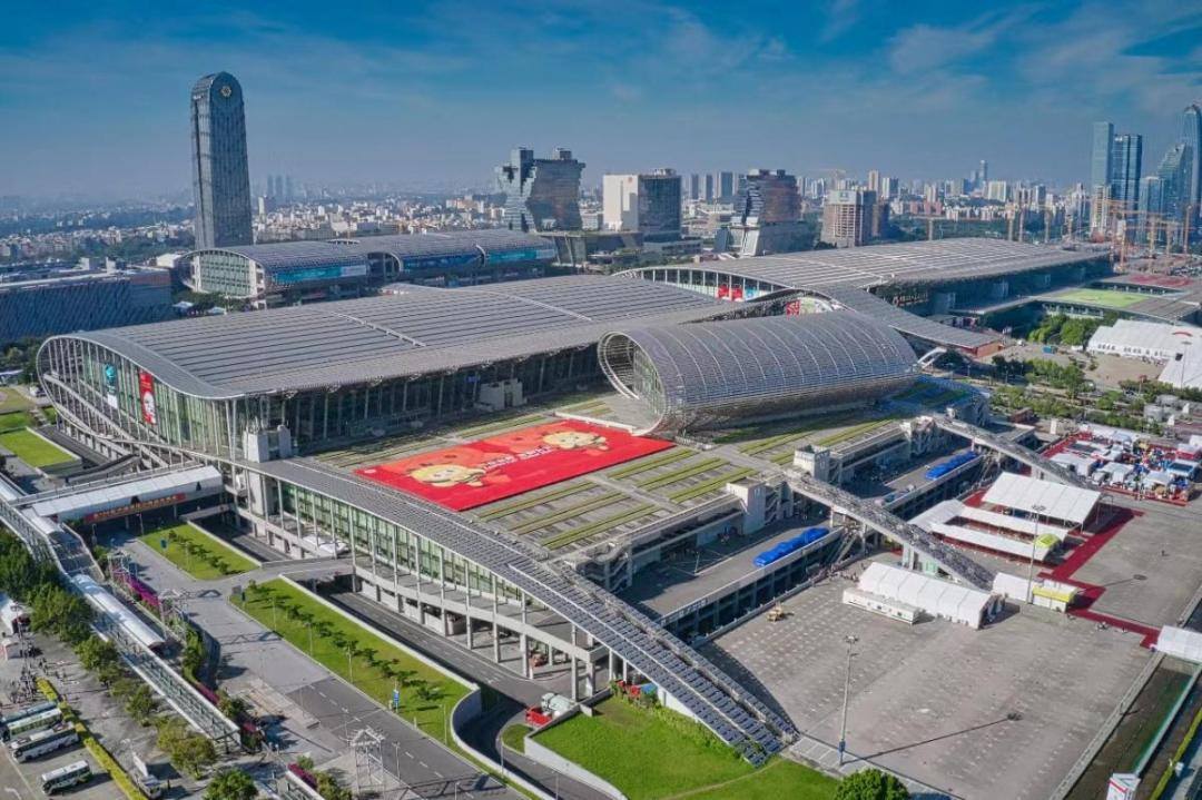 而今的广交会展馆落户于黄埔古港附近的琶洲,于2001年4月动工兴建。2003年10月,广交会一期工程完成后,第94届广交会首次在该会展中心,即琶洲新馆设置部分展区试运行,主、分馆总展览面积达36万平方米。此后,琶洲展馆和流花路展馆同时举行每年两届的交易会。