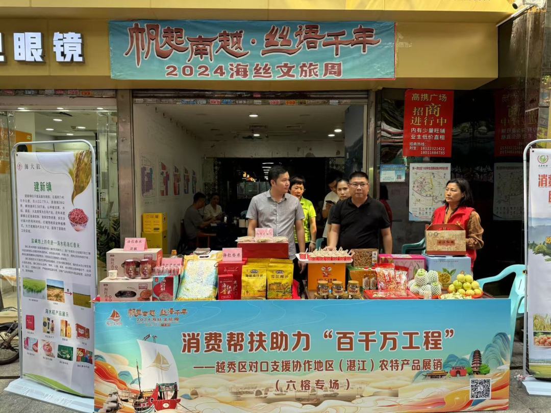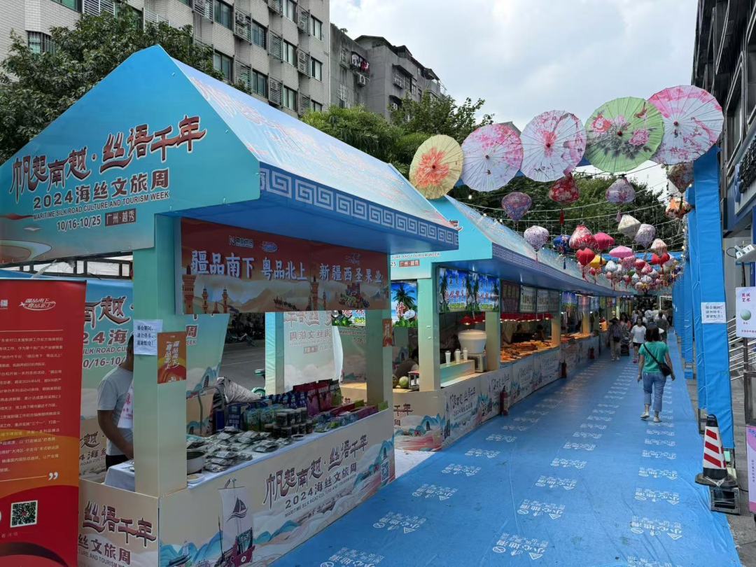 10月16日至25日,六榕街发动西华路美食商家开展美食活动,推出“西华美食地图”,带领市民游客体验“舌尖上的海丝文化”。活动共设“美食区、非遗区、亲子游乐区、定点帮扶售展区”四大区域,涵盖“展、演、游、食、购、娱”六大主题玩法,以海丝文旅周为契机,与湛江开展合作,让帮扶产品搭上消费顺风车,以消费拉动经济,助力“百千万工程”。
