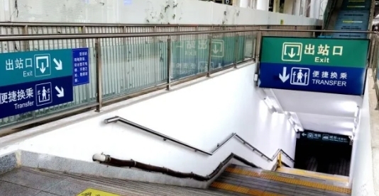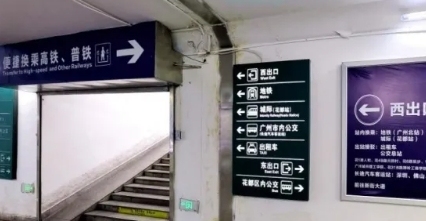 1、列车到达广州北站站台后,认准出站口便捷换乘标识,下地道。