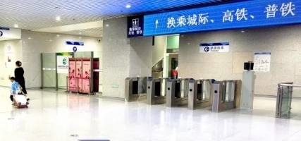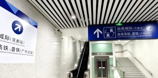 3、出站后,认准“换乘城际、高铁、普铁”指引标识,往前是地铁方向,往右是花都站。