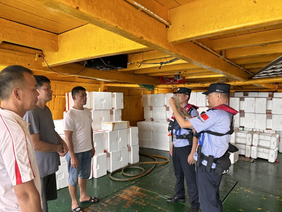 面对出入境港澳流动渔船及渔民数量持续攀升并突破新高的情况,该站持续优化出入境查验流程,建立“网上实时申报—流渔协会代报—边检随报随检”工作模式,强化对出入境船舶的预查预检,减少候检时间、优化候检环节,全力实现渔民渔工“当日到港当日检”。此外,该站还在万山海域桂山岛、大万山岛、外伶仃岛3个岛屿设置了执勤点和流动渔船集中锚泊区域,安排警力24小时驻点执勤,方便港澳流动渔船就近申办出入境手续,节约渔民渔工办事成本,平均可为每艘渔船节约航程2小时,有效提高了出入境船舶及人员通关效率。