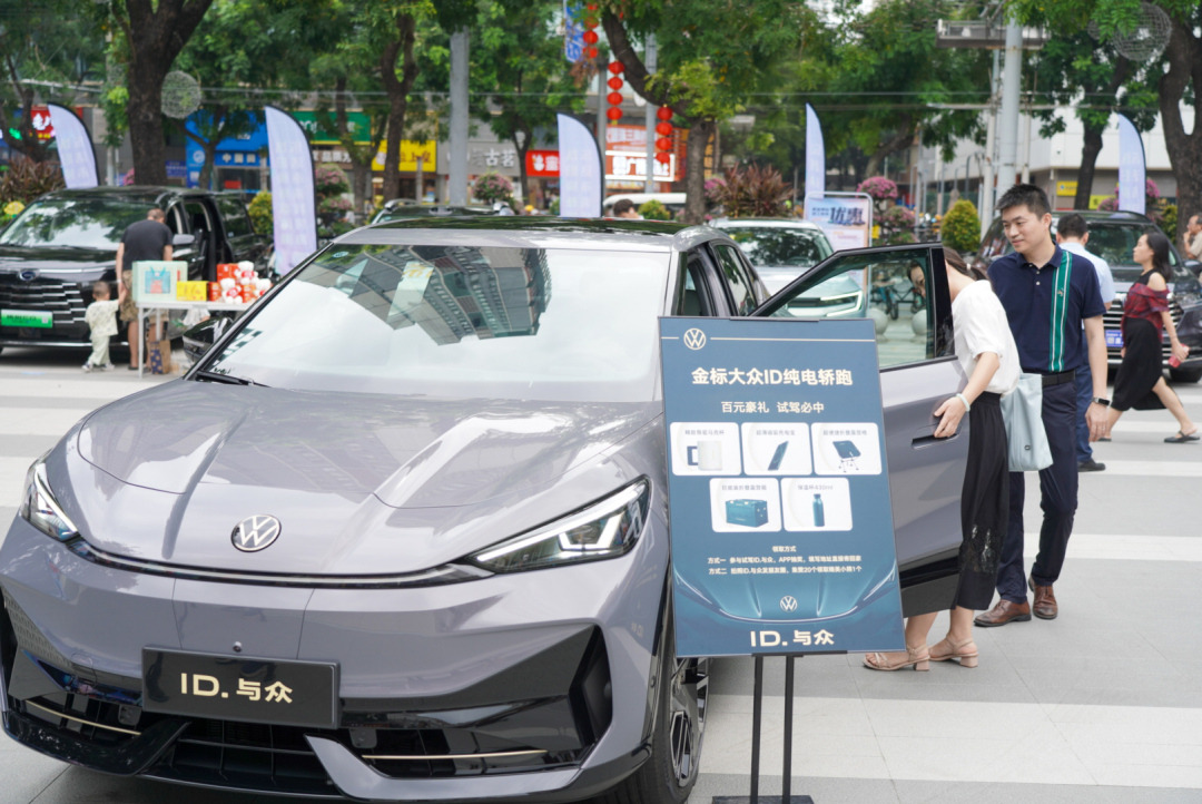 “这次嘉年华我们带来了今年7月上市的新款新能源车型大众ID.与众,这款车偏年轻化,对参与以旧换新的消费者有吸引力。”大众汽车ID.与众空间工作人员宋先生介绍,除了政府“报废更新”和“置换更新”补贴,商家还在此基础上提供5000元到1万元的补贴,最高补贴达3万元。“我们店,这款车的销量中有40%用到了以旧换新补贴。”他说。
