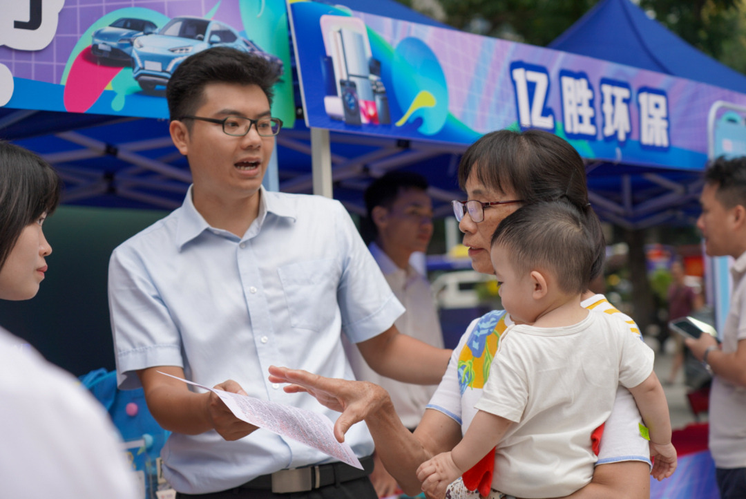 与此同时,2024年荔湾区消费品以旧换新进社区系列活动正如火如荼地开展。在白鹤洞街中海花湾壹号 C 区广场,一场由广州市荔湾区商务和投资促进局、白鹤洞街道办事处指导,荔胜广百电器、宝泽汽车、中迪新能源汽车共同参与的活动正在进行。
