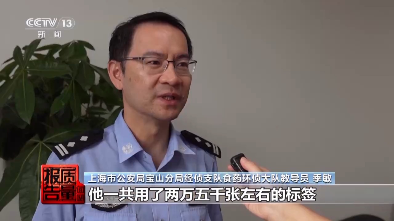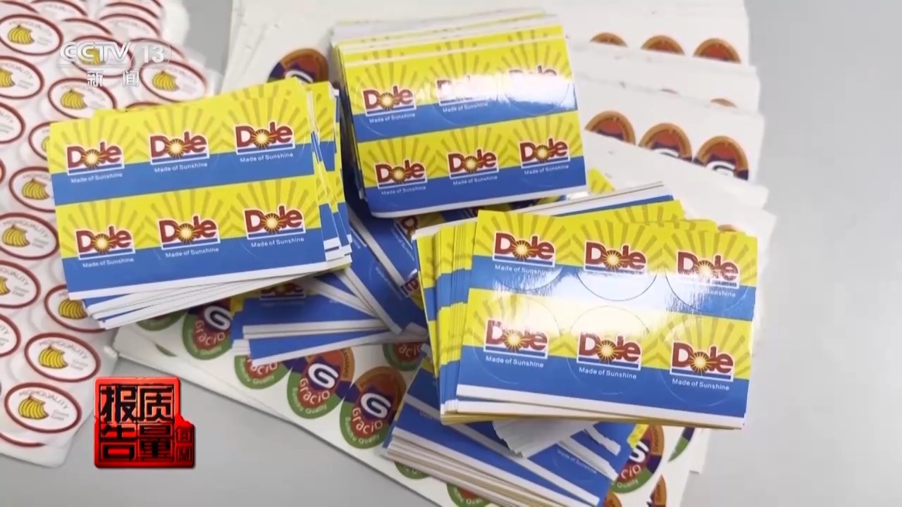 上海市公安局宝山分局经侦支队食药环侦大队教导员 季敏:没有标签的普通香蕉,一般卖两到三元一斤,但是贴上这个标签以后,价格就可以涨到四到五元了。他一共用了两万五千张左右的标签。一般说一串香蕉贴三张的话,他已经卖了八千余串香蕉了。