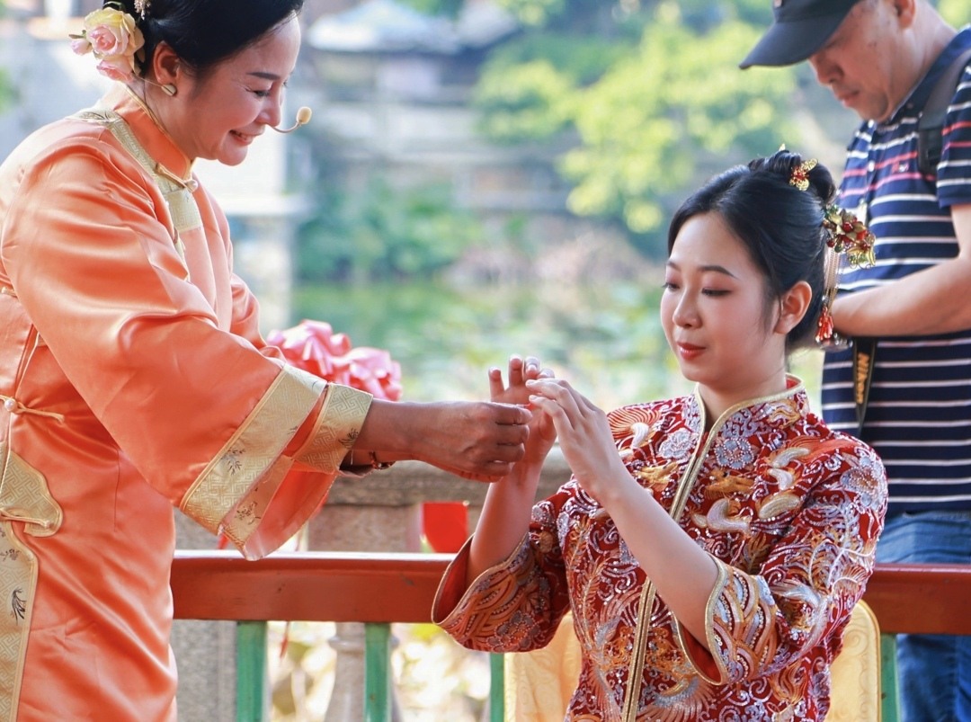 莲溪荷畔、连理树下,情定一生,让参与体验的9对夫妻留下了美好的回忆。结婚十年的胡先生和龚小姐称这次体验“圆了传统婚礼的梦”:“十年前是穿婚纱、打领带,在酒店办的婚礼。这次可以穿上大红龙凤褂,就在宗祠门口经历一次黄阁原汁原味的传统婚礼,我觉得感受非常不同,好像穿越到古代一样,每个环节都有被祝福的感觉,特别有意义。”龚先生自称黄阁“糊涂哥”:“我们在大学就认识,稀里糊涂就结了婚,现在又稀里糊涂结了第二次,幸好都是和同个人。经历这次后,我觉得传统婚礼特别好,不铺张浪费,细节又动人,以后小孩长大了也会建议他选择传统婚礼。”