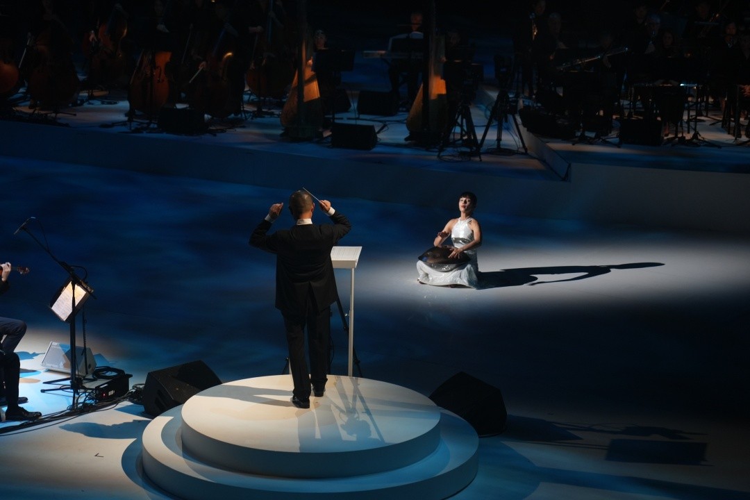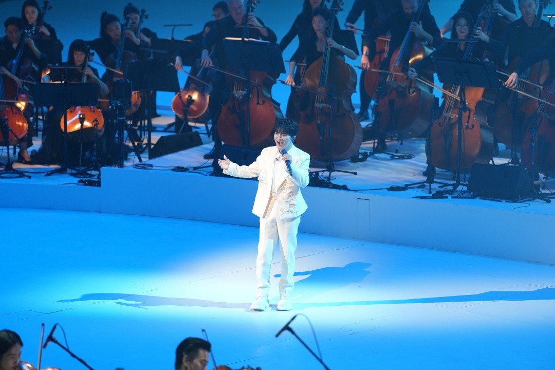 10月19日晚,第四届“粤港澳大湾区文化艺术节”开幕典礼在红磡香港体育馆举行。由香港、广州、深圳、澳门四地乐团组成的“粤港澳大湾区文化艺术节管弦乐团”,在著名作曲家谭盾指挥下,联袂带来交响诗《声音河流》的世界首演。音乐会还邀请内地流行歌手周深作特别嘉宾,在《声音河流》首演结束后,周深惊喜返场,献唱歌曲《月光爱人》,受到现场观众的热烈欢迎。