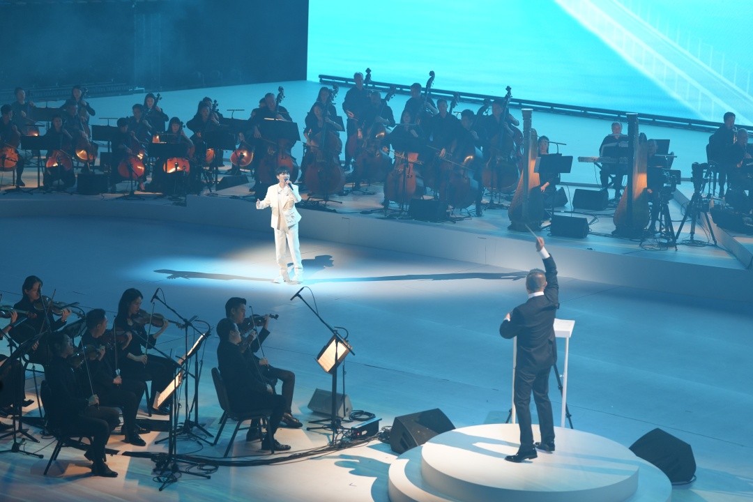 谭盾强调,当下的创作最重要的是创新,是要把世界文化和中华民族的文化、古代的文明和未来的创造结合在一起。“我听到唐小燕老人家演唱的带有纯正广东味道的地水南音,我觉得很感动,而当周深出来演唱的那一瞬间,我指挥得眼泪都出来了,因为我能看到传承。还有泉州的压脚鼓,从大屏幕中老师傅的表演到现场小姑娘的演绎,我能看到传承。”谭盾表示,和年轻人分享音乐不只是要分享新的歌曲,也要跟年轻人分享祖先流传下来的东西。