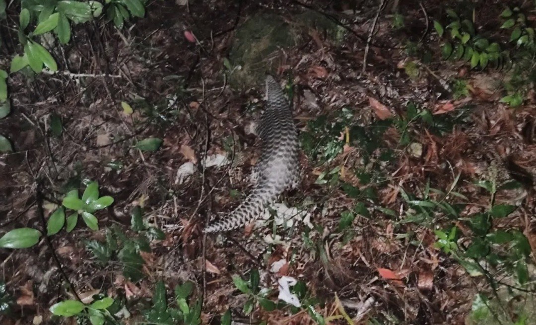 “中华穿山甲胆子很小,当时见到这只中华穿山甲时,它正把自己的身体蜷缩成球状,并伴有轻微颤抖。”南澳县自然资源局工作人员王少辉介绍道,这只中华穿山甲体型较小,体长大约40cm。当晚,工作人员详细检查了中华穿山甲的身体状况,确认其无创伤和异样。“在观察了两个小时后,这只中华穿山甲一切如常,判断其适合野外生存,我们便将其放归森林。”