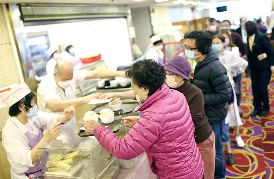 Customers wait in line at a dim sum restaurant in Mong Kok, Hong Kong, on Dec 29, 2022 after the city lifted most social distancing restrictions, including requiring dine-in customers to provide COVID-19 vaccination records. (EDMOND TANG/CHINA DAILY)