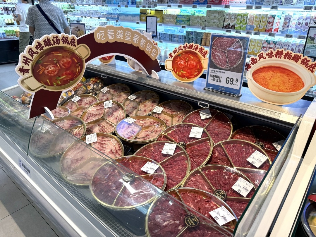 盒马火锅新品研发采购斯雷表示,贵州旅游热让全国消费者爱上了红酸汤,今年盒马火锅季的第一个主打新品就是贵州红酸汤系列。