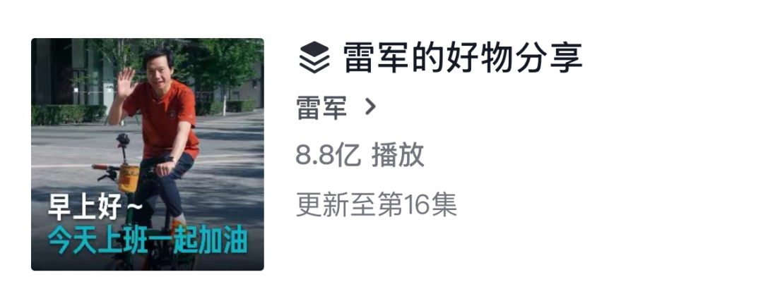 (雷军的好物分享系列更新至16集,风格休闲亲民。)