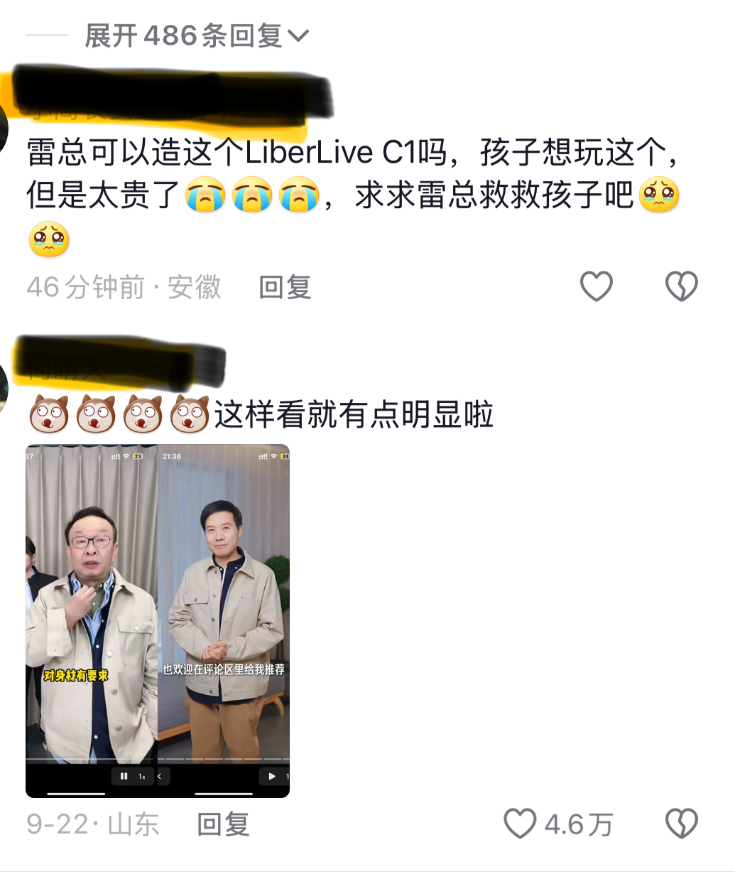 比如此前在介绍小米手机新品时,评论区点赞最多的一条则是一位网友提出希望小米出拍立得相纸、相机。对此雷军保持着有求必应的态度。很快,拍立得“平替”米家口袋照片打印机上线,这款“随身拍”产品一度火到断货。随后雷军在他的年度演讲中还使用了口袋打印机自拍,为这款产品再圈了一波粉。但当有人呼吁小米进军房地产时,雷军直接回绝表示“这你就别想了”以断绝网友念想。