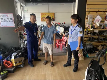 检查人员深入辖区电动自行车经营销售场所开展联合检查。重点对各电动自行车销售门店是否存在违法私自改装电动自行车、是否存在电动自行车违规充电、蓄电池安全性能是否符合要求等方面进行检查,并对各专卖店有无落实消防安全责任,消防器材是否完好有效、是否堆放可燃易燃物品、是否无证经营、是否销售“三无”配件、用火用电安全措施是否按要求落实到位、店内员工是否掌握灭火技能等情况等进行检查。
